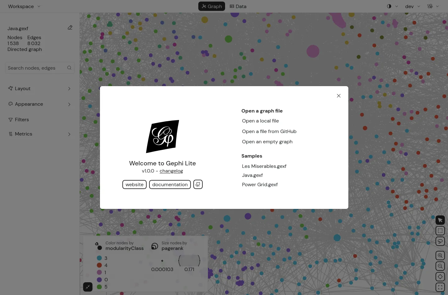 Discover structural patterns in your connected data. From social networks to biological systems, Gephi handles complex networks of ten to ten million nodes with advanced algorithms and metrics.