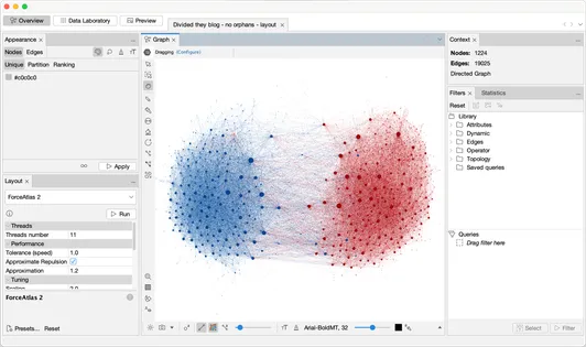 Since 2008, Gephi has empowered researchers, journalists and students across diverse fields to explore, manipulate, and understand complex networks.