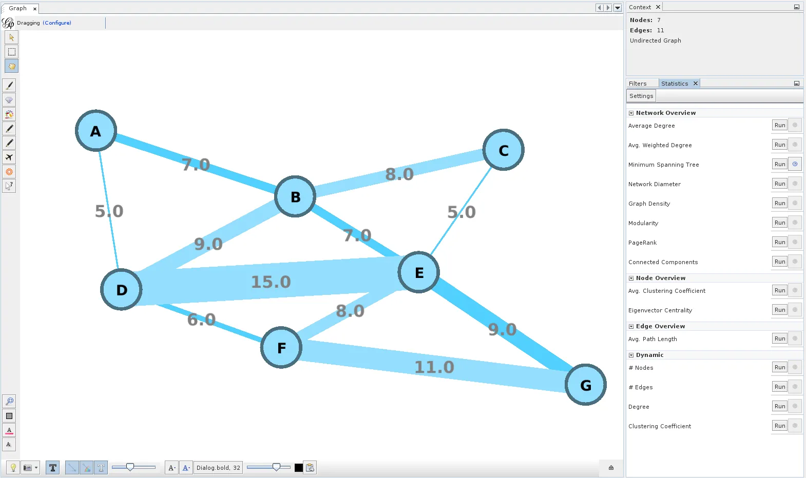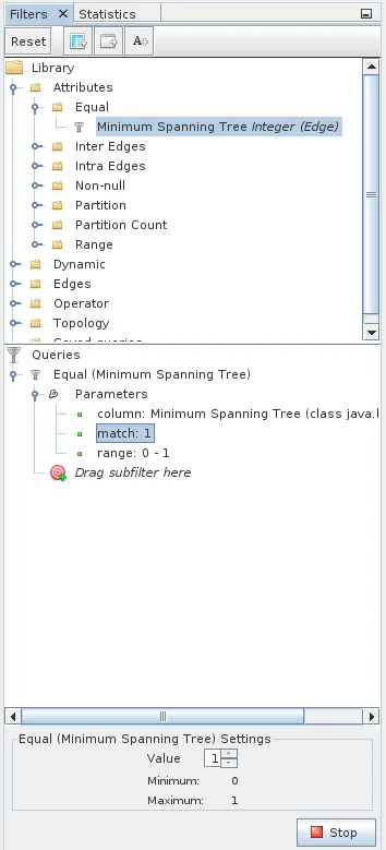 The Minimum Spanning Tree Gephi Plugin permits users to calculate minimum spanning trees using Kruskal's Algorithm