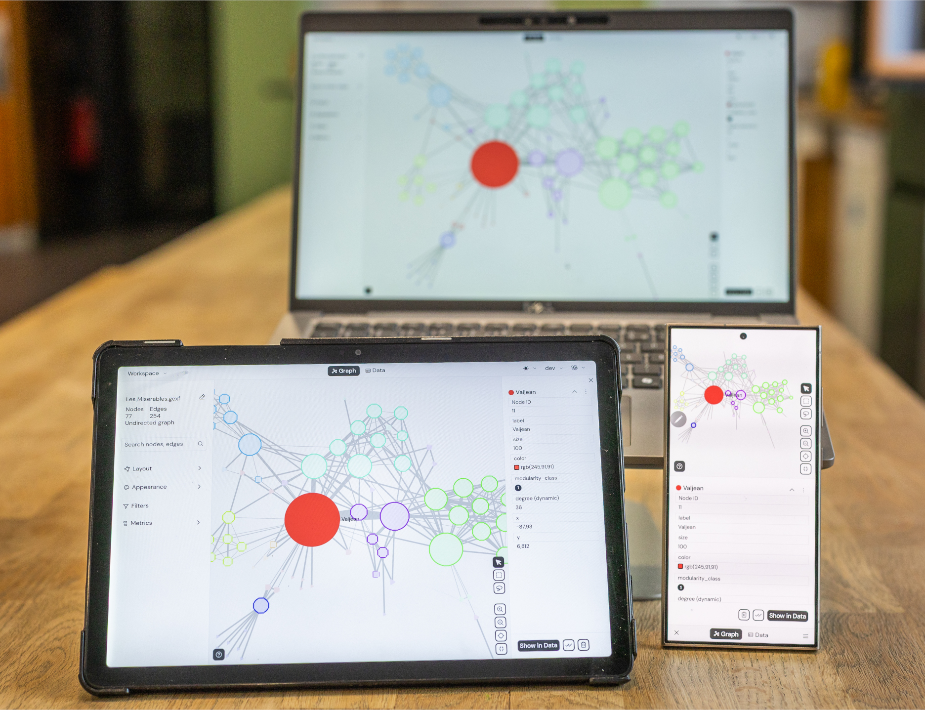 Gephi Lite supports touch and multitouch interactions, so that you can browse your networks as you would manipulate a map.