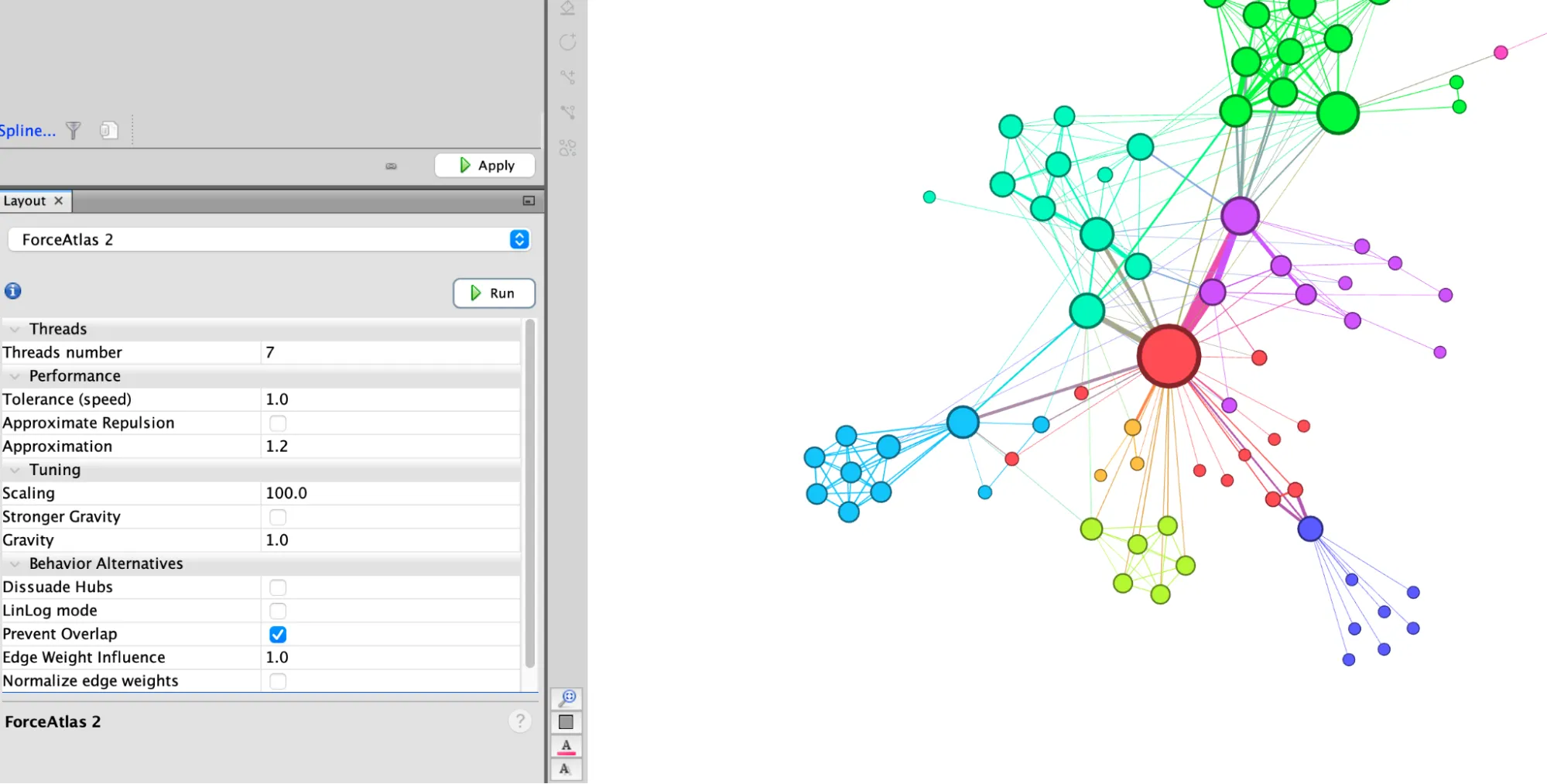 - Select “ForceAtlas 2” — the force-directed algorithm especially developed for Gephi.